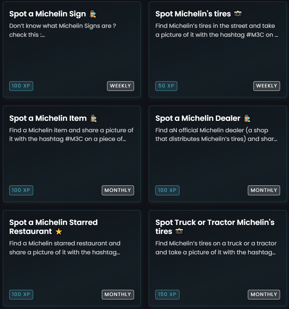 Michelin has a desire to create new experiences for its customers while consolidating its relationship with its community. To make this happen, Michelin uses gamification through Zealy as a crucial tool to engage and grow the community.