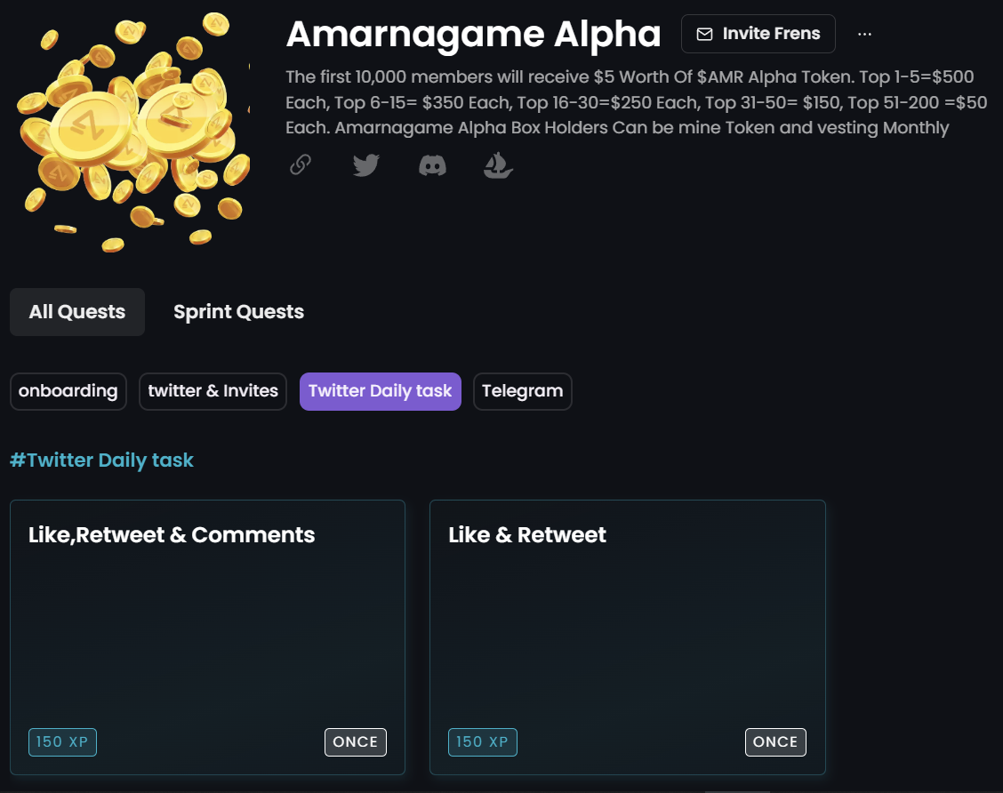 Automated daily Quests can make your life easier! Your community can catch up with the latest updates on Twitter while also being rewarded for interacting with your content.