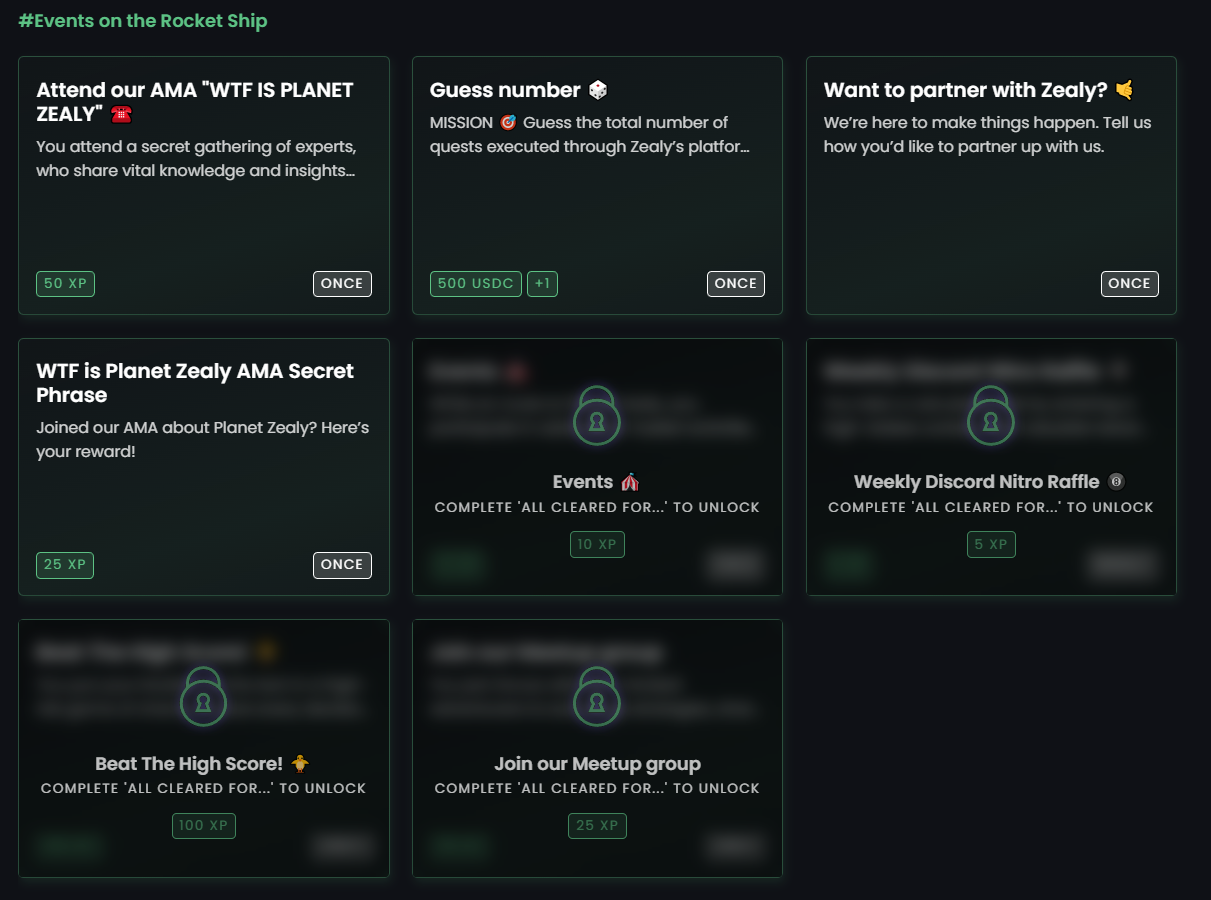 Zealy Quests makes it easy to create fun and interactive activities that tie in with your event theme. For example, you could challenge attendees to complete a quiz, participate in a scavenger hunt, or introduce secret phrases announced during your event.