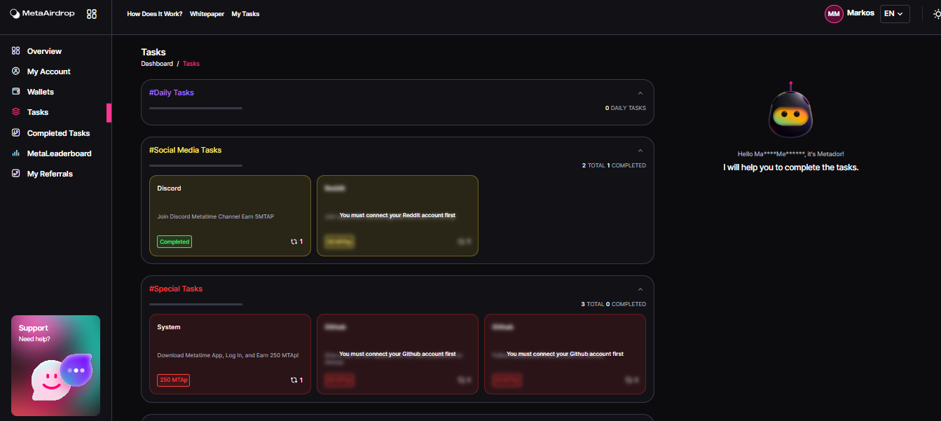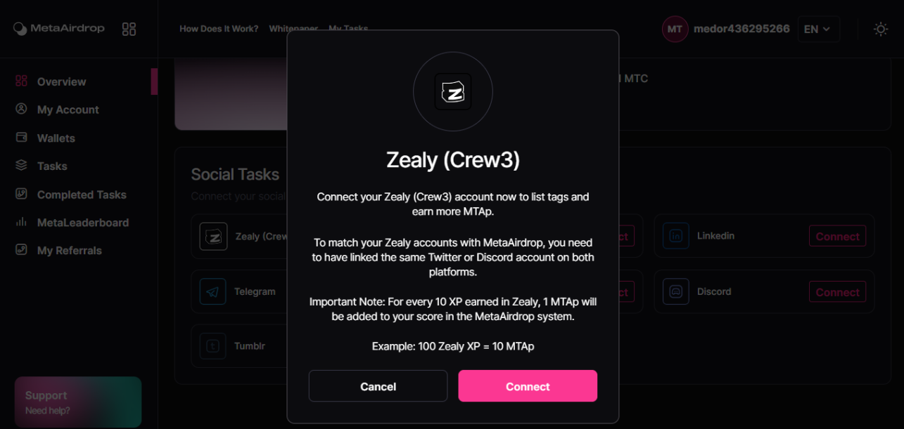For Metatime the experience is even smoother as you connect your Zealy account to the website and then you don’t have to leave in order to complete tasks.