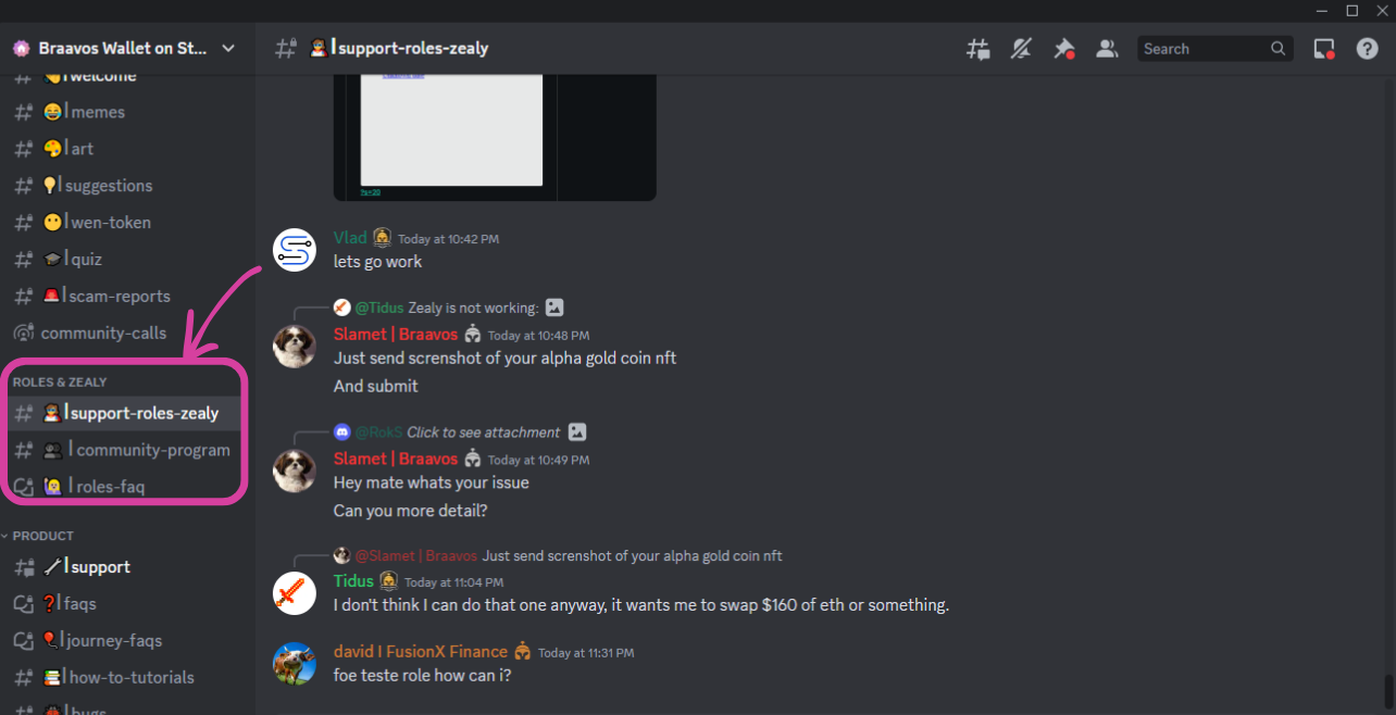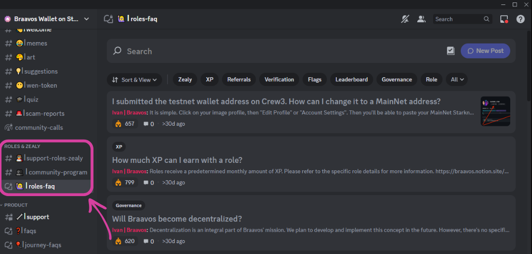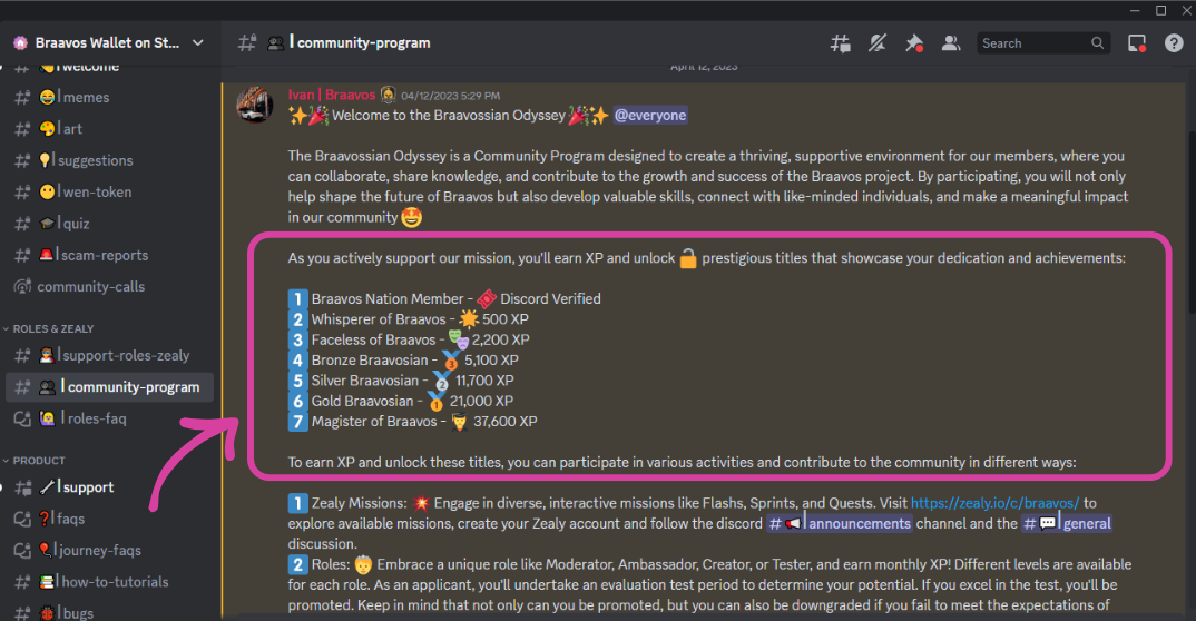 Braavos is taking this one step further by having an entire category on their Discord server dedicated to their community program, powered by Zealy.