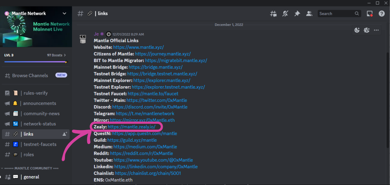Adding your Zealy Questboard as part of your official links in the Discord Server and everywhere else like Link3, Linktree, etc helps your community know that you have a Zealy Questboard where they can contribute.