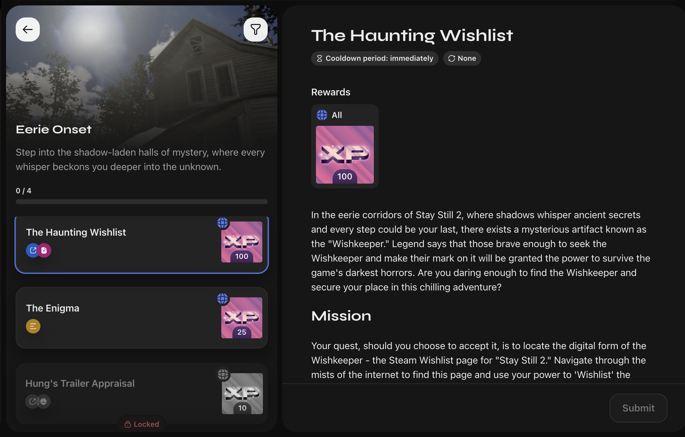 “The Haunting Wishlist” quest asked users to save Stay Still 2 on their Steam wishlist, which led to over 127 saves, representing +17% wishlist growth.