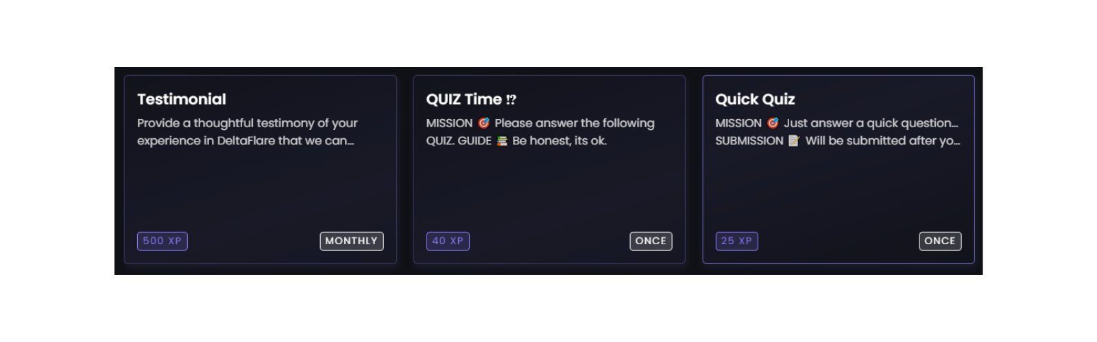 As soon as I found you guys, I dropped the other platform I paid for, and we are here exclusively now. Our #NautyFrens at DeltaFlare love to do what we call Space Races. We have quizzes, 10-15 Quests long, that challenge their knowledge and let them race to earn XP (as well as our in-house $WINR tokens).