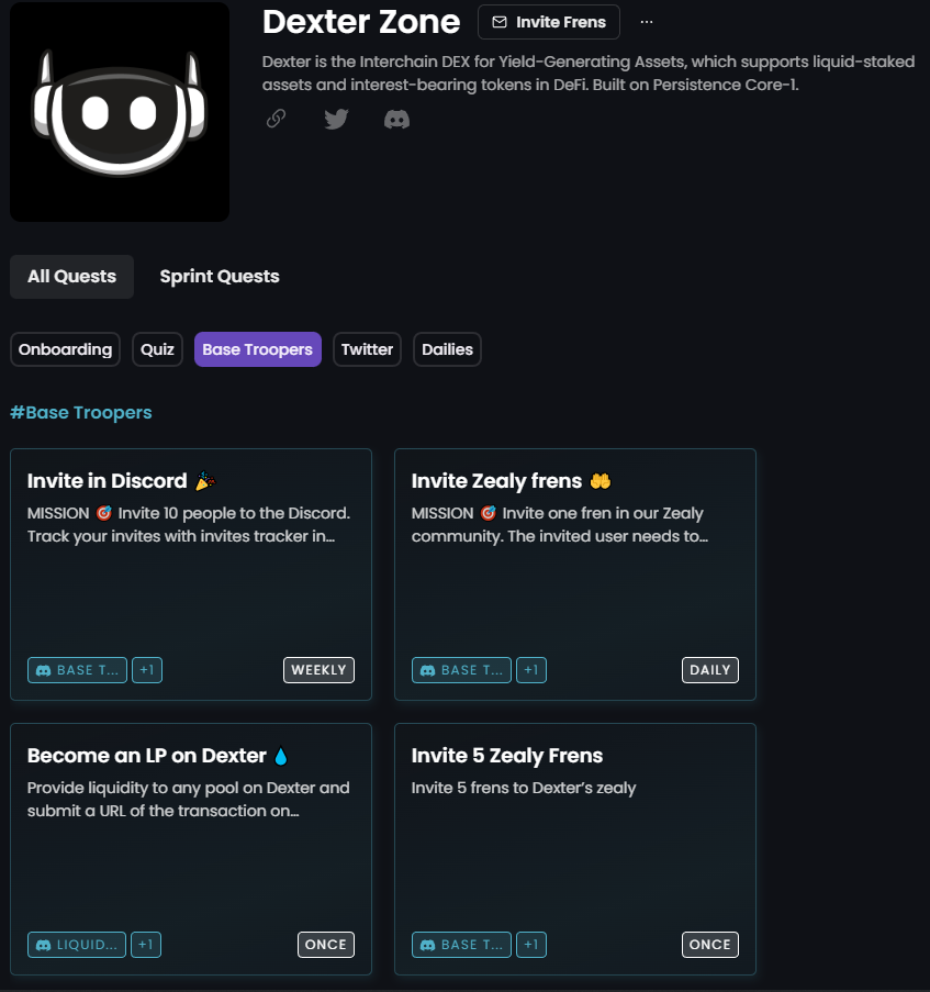 Since we started using Zealy, the Dexter community has seen significant growth, and engagement has also improved. Many members discover the project through Zealy, and it serves as an effective onboarding tool.