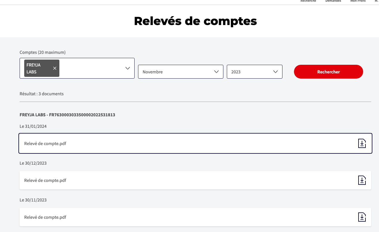 - click 10 times per month to get each statement: select the month, click search, click download, it opens a PDF in a new tab, change tab, download it, go back to your SG tab to get the next one.
